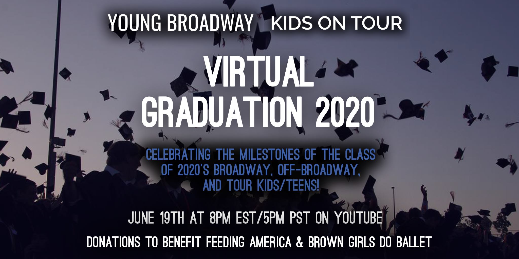 Join Young Broadway Actor News and Kids On Tour as they present a virtual graduation ceremony for the Broadway, Off-Broadway, and tour alumni who are graduating this year as part of the Class of 2020! Be sure to watch this new online concert on June 19th at 8pm EST, featuring performances from these talented performers as well as appearances from special “commencement speakers”. Donations will benefit Feeding America and Brown Girls Do Ballet.